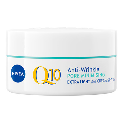 Nivea Q10 Power Pore Minimising Day Cream SPF15 är en dagkräm med dubbelverkande Q10 som skyddar hudens celler mot skador orsakade av fria radikaler och yttre faktorer samt ger hudcellerna energi för att neutralisera och reparera cellskador. Krämen innehåller algextrakt som minimerar porerna och gör dagkrämen lämplig för kombinerad hud. Dagkrämen innehåller SPF 15 som skyddar mot solens strålar. Den är dermatologiskt testad.
