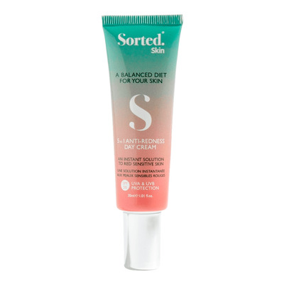 Sorted Skin 5 in1 Anti-Redness Day Cream SPF 50 är en allt-i-ett-dagkräm med färgkorrigering och högt solskydd