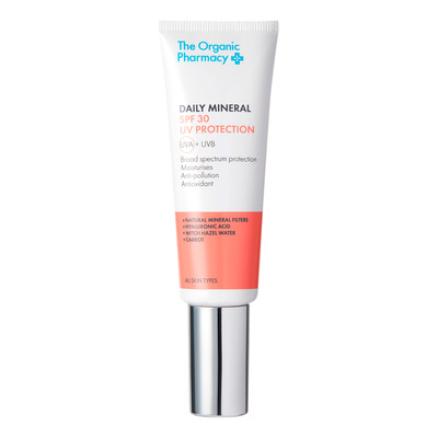 The Organic Pharmacy Daily Mineral SPF 30 UV Protection är en mineralbaserad fuktkräm med serum som ger ett bredspektrumskydd mot UVA- och UVB-strålar. Den är tillverkad med icke-nano mineralfilter som effektivt skyddar huden mot solen utan att täppa till porerna. Den återfuktar också och fungerar som en skyddande barriär mot föroreningar och fria radikaler. Den lätta formulan absorberas snabbt och gör att huden känns mjuk och återfuktad.
