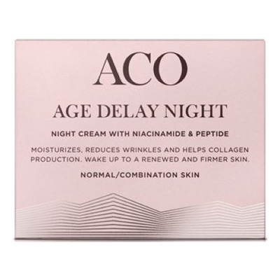 ACO Age Delay Nattkräm Normal hud är en återfuktande nattkräm med peptider som hjälper hudens kollagenproduktion