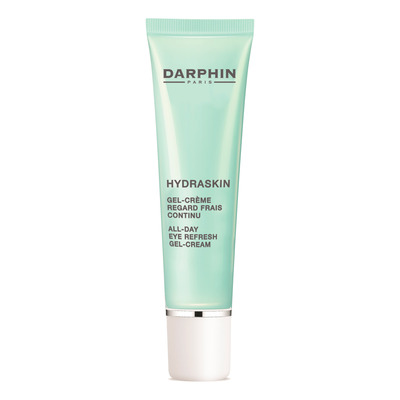 Darphin Hydraskin All-Day Eye Refresh Gel-Cream ger omedelbart en fräsch och strålande hud runt ögonen. Denna uppfriskande och lätta gel-cream är formulerad med 92% naturliga ingredienser, såsom Frozen Water Algae, Salicornia Herbacea och Butterfly Lavender. Den är fri från parabener, mineralolja, ftalater och formaldehyd, vilket gör den säker för den känsliga huden runt ögonen. Krämen återfuktar huden under hela dagen och minskar svullnader och mörka ringar. Den svalkar också huden, stärker hudens fuktbarriär och skapar en perfekt bas för makeup så att den ser fräsch ut hela dagen.