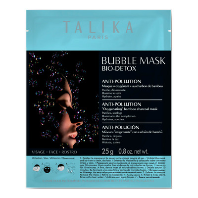 Talika Bubble Mask Bio-Detox är en engångsmask som rengör huden på bara 10 minuter. Masken skapar mikrobubblor som avlägsnar orenheter och stimulerar hudens mikrocirkulation. Den är berikad med bambukol som absorberar föroreningar och överflödigt talg. Samtidigt stärker probiotisk risferment hudens naturliga barriär. Masken är idealisk för dem som bor i stadsmiljöer eller vill ha en snabb uppfräschning av huden. Den är inspirerad av K-beauty och utvecklad i Korea.
