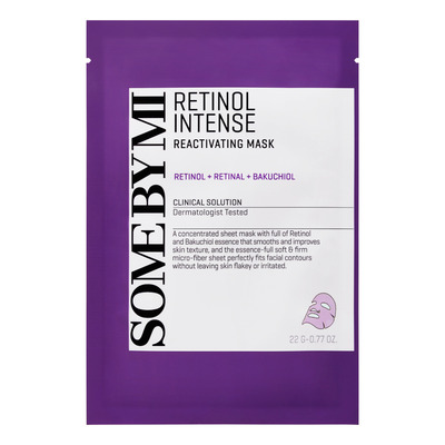 Some By Mi Retinol Intense Reactivating Mask reducerar ålderstecken och åldersfläckar samtidigt som den återfuktar huden intensivt. Masken dränks i ett krämigt ansiktsvatten/essens som ökar fuktnivån och förbättrar hudens elasticitet. Med både retinol och bakuchiol kombinerar masken två kraftfulla ingredienser som föryngrar huden och minimerar fina linjer utan irritation. Denna sheet mask är perfekt för dig som letar efter en skonsam men effektiv anti-ageing-behandling som är särskilt lämplig för känslig hud.