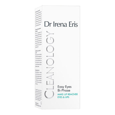 Dr. Irena Eris CLEANOLOGY Two-Phase Eye and Lip Makeup Remover är en tvåfasig ögon- och läppmakeupremover som kombinerar en oljefas och en vattenfas. Oljefasen löser upp pigment, vattenfasta formulor och UV-filter, medan vattenfasen rengör och lugnar den känsliga huden runt ögon och läppar.