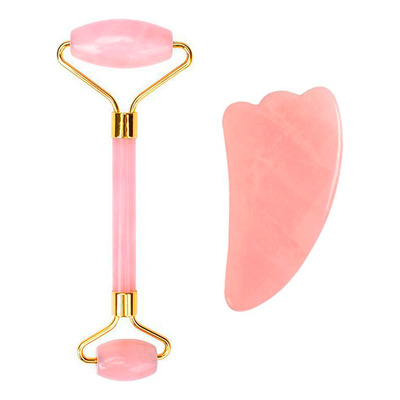 Jaderoller & Gua Sha Rose Quartz - 2 st