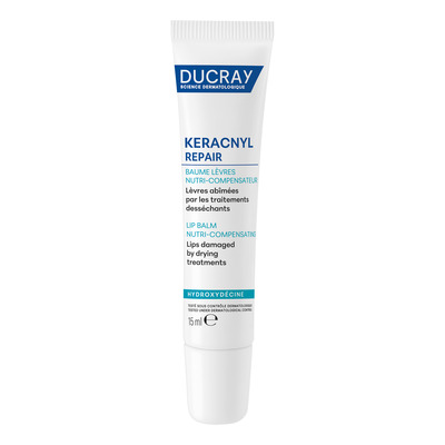 Applicera Ducray Keracnyl Repair Lip Balm på läpparna så ofta som behövs. Den rika, närande formulan är särskilt effektiv för personer som genomgår medicinsk aknebehandling och ger djupgående återfuktning, reparation och skydd.