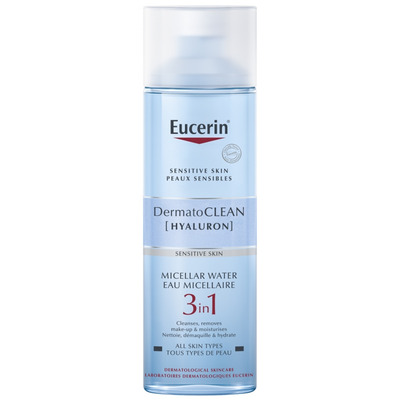 Eucerin DermatoClean Micellar Water 3 in 1 är en mild men effektiv ansiktsrengöring som avlägsnar smink och orenheter utan att torka ut huden. Den avlägsnar både ansikts- och ögonmakeup, inklusive vattenlösliga produkter. Formulan fräschar upp huden och hjälper till att bibehålla dess naturliga fuktbalans, så att den känns ren, mjuk och len efter användning.