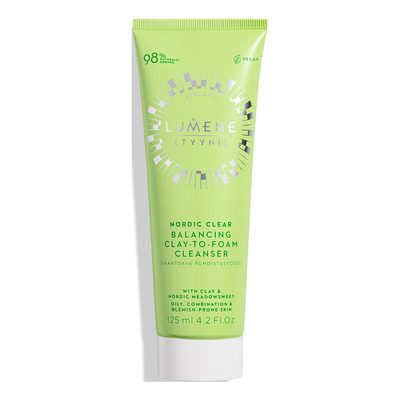 Upptäck Lumenes Nordic Clear Balancing Clay to Foam Cleanser, en revolutionerande rengöring för fet, kombinerad och oren hud. Denna innovativa rengöring tar effektivt bort makeup, orenheter och överflödig olja, rengör porerna och förebygger nya orenheter - allt utan att torka ut huden.