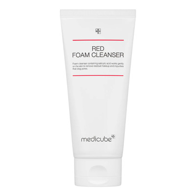 Medicube Red Foam Cleanser är en vattenbaserad ansiktsrengöring som effektivt avlägsnar smuts, överflödigt sebum och sminkrester utan att torka ut huden. Den innehåller 0,45% salicylsyra som tränger in i porerna och hjälper till att lösa upp talg och orenheter. Rengöringen är särskilt lämplig för aknebenägen hud och fet T-zon eftersom den både rengör på djupet och stödjer hudens naturliga balans.