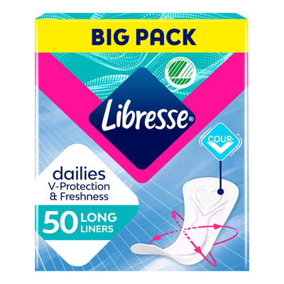 Libresse Dailies Fresh Long Liners är tunna, superabsorberande trosskydd som är utformade för att följa kroppens rörelser för maximal komfort och fräschör under hela dagen. Den unika CurveFit-formen gör att trosskyddet anpassar sig till din kropp och sitter där det ska - utan att veckas eller glida.