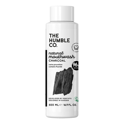 Natural Mouthwash från The Humble Co. är en mild men mycket effektiv munskölj, baserad på naturliga ingredienser. Den innehåller extrakt från gojibär, grönt te och panaxginseng samt aloe vera, som har en läkande och stärkande effekt på tandköttet. Denna variant innehåller också aktivt kol, som har en rengörande effekt.