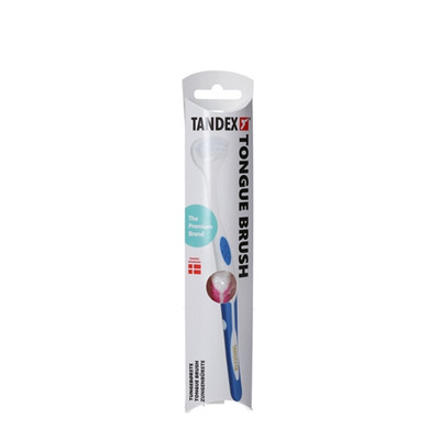 Tungskrapa från Tandex, som effektivt tar bort bakterier från tungan och ger frisk andedräkt