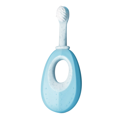 The Humble Co. Plant-Based Baby Toothbrush Blue är en baby- och småbarnstandborste med ett kort och greppvänligt skaft. Den är utformad för barn med små händer och fungerar som en bra introduktion till tandborstning. Borsthuvudet har extra mjuka nylonborst som är skonsamma mot känsligt tandkött och nya tänder.