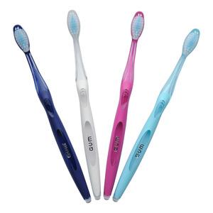 Gum Original White-tandborsten har också små gummispetsar som hjälper till att försiktigt polera tandytan. Den långa halsen ger bra räckvidd och kontroll under borstningen. Tandborsten levereras i osorterade färger.