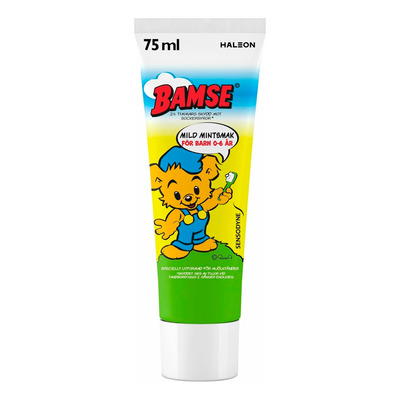 Bamsetandkrämen från Sensodyne innehåller fluor. Tandkrämen är speciellt utvecklad för barnens första tänder. Om tänderna borstas två gånger om dagen skyddas de mot karies, plack och hål, och även emaljen skyddas. Formulan är mild och lätt skummande med en mild mintsmak.