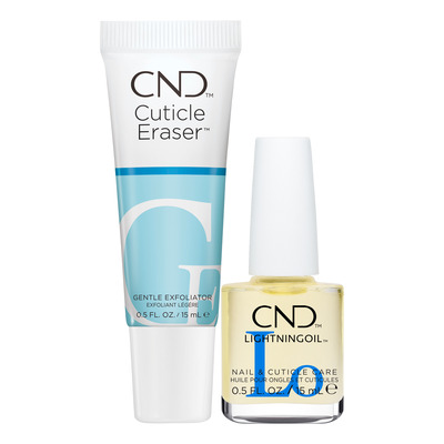 CND Nail & Cuticle Couple Kit kombinerar två professionella vårdprodukter som arbetar för att förbättra utseendet på naglar och nagelband. Kitet innehåller CND Lightening Oil, som vårdar och mjukgör både naglar och nagelband med vårdande ingredienser. Vid regelbunden användning kommer naglar och nagelband att se mer välvårdade ut.