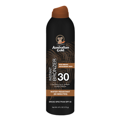 Australian Gold Instant Bronzer Continuous Spray SPF30 för omedelbar lyster och enkel applicering i 360°