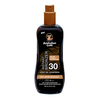 Australian Gold Instant Bronzer Sunscreen Spray Gel SPF30 ger en vacker glöd och skyddar mot solens strålar