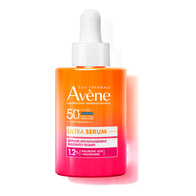 Avène Ultra Serum Instantly Plumps SPF50+ är en anti-ageing serumformula med högt solskydd och omedelbar plumping-effekt. Det patenterade Triasorb-filtret ger ett brett skydd mot UVB-, UVA- och blått HEV-ljus och förebygger fotoåldrande, medan ett antioxidativt vitaminkomplex skyddar mot oxidativ stress. Serumet är berikat med hyaluronsyra och niacinamid som omedelbart gör huden fylligare och minskar framträdande linjer och synliga porer.