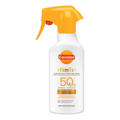 Carroten Family Face & Body Milk Trigger SPF 50 ger ett effektivt solskydd för hela familjen