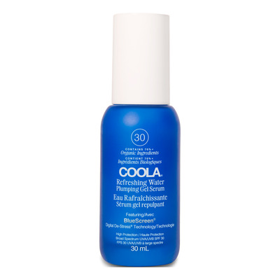 Coola Refreshing Water Plumping Gel Serum SPF30 är ett vattenbaserat serum som kombinerar intensiv återfuktning med bredspektrum SPF30. Formulan är utvecklad med Water-Gel Technology, som ger en svalkande och lätt känsla på huden. Den innehåller över 70% ekologiska ingredienser och är idealisk för daglig användning på alla hudtyper. Med BlueScreen-Digital De-Stress-Technology skyddar serumet effektivt mot blått ljus, infraröd strålning och föroreningar.