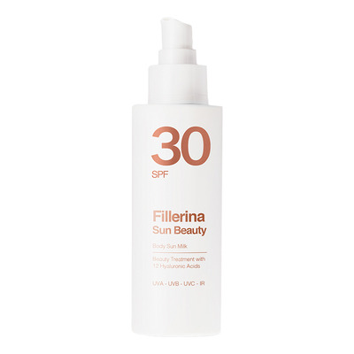 Vill du skydda huden från solens strålar samtidigt som du ger huden optimal fukt? Då är solkrämen från Fillerina ett måste! Body Sun Milk skyddar huden brett och effektivt och har en anti-aging, anti-rynk och anti-uttorkande effekt. Förutom krämens solskyddande egenskaper motverkar solfiltren överdriven värme och vätskeförlust från huden.