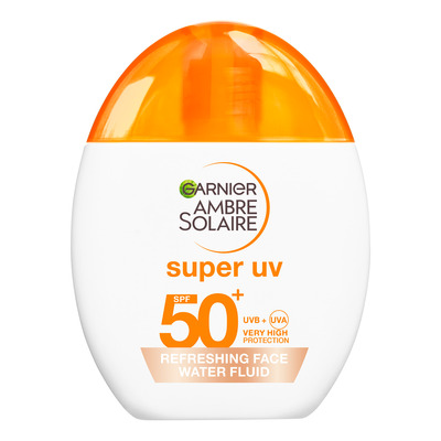 Garnier Ambre Solaire Super UV Refreshing Water Fluid skyddar mot solen och ger en naturlig lyster utan att vara fet