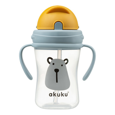 Akuku vattenflaska med fin björn-design är den perfekta följeslagaren för ditt barn när det ska lära sig att dricka självständigt. Den är utformad för små händer, med bekväma handtag och ett praktiskt sugrör med flip-top som gör det enkelt och roligt att dricka. De rörliga delarna på locket gör att sugröret kan stoppas undan och förhindrar oavsiktligt spill.
