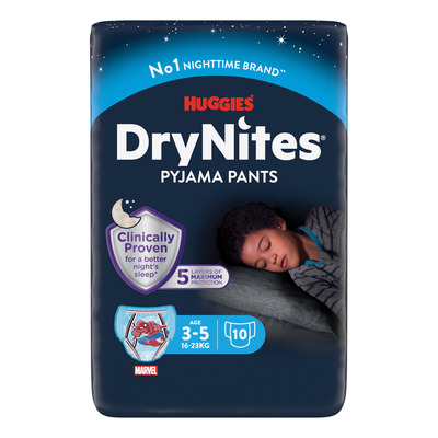 Avsedda för användning under nattkläder och tas på och av som vanliga underkläder, barnet förblir torrt och behagligt hela natten. De håller sängkläder och pyjamas rena och torra. Barnet kommer inte bara att sova bättre utan också känna sig säker. DryNites pyjamasbyxor finns för både flickor och pojkar med olika motiv, så att de ser ut som vanliga underkläder.