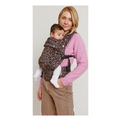 Den ergonomiska designen ger stöd åt barnets höfter, ryggrad och nacke i en naturlig M-position från nyfödd till ca 15 kg. Nomad Air kan maskintvättas på skonprogram. Jaguar-mönstret är ett djärvt och utmärkande djurmönster i svarta och beige nyanser.