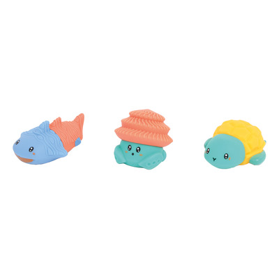 Detta set med små djur från Ludi är perfekt för lek i badet. Det ska vara roligt för barn att bada, och det blir ännu roligare med leksaker. Setet består av 3 olika djur som kan kombineras och spruta vatten, det gör dem roliga för barnet att leka med. Badleksakerna mäter 7 cm och är lämpliga för barn från 10 månader.