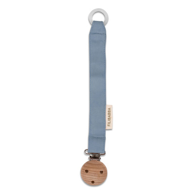 Filibabba nappband i färgen "Warm Blue", vilket är en fantastisk, ljusblå färg. Nappbanden finns i många, olika, fina färger - du kan se dem här hos oss på Med24!