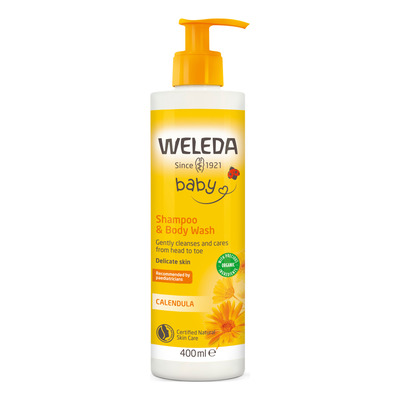 Weleda Calendula Baby Shampoo & Body Wash är skonsam 2-i-1-vård för småbarns hud och hår