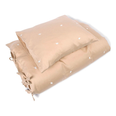 Filibabba Juniorsängkläder GOTS med Valen Christian-broderi och en beige bakgrund passar i barnkammaren