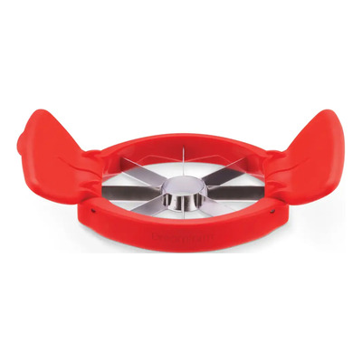 Dreamfarm Flapple är en praktisk äppelskärare som både skär äpplen i 8 lika stora bitar och avlägsnar kärnhuset. De upphöjda handtagen ger ett säkert grepp, medan den gjutna basen säkerställer att äpplet skärs hela vägen igenom. Flapple är tillverkad av dubbelförstärkt japanskt rostfritt stål för extremt skarpa och hållbara skärblad. Designen är vikbar så att den tar upp minimalt med utrymme och förvaras säkert i kökslådan.