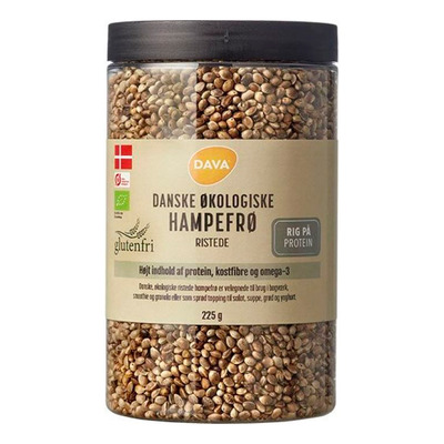 Dava rostade hampafrön är danska ekologiska hampafrön som rostats varsamt för att bevara smak och näringsvärde. Fröna har ett högt innehåll av protein, kostfiber och omega-3, vilket gör dem till ett hälsosamt och mångsidigt val. De är redo att ätas direkt ur burken och kan användas som ett näringsrikt alternativ till andra spannmål och frön. Fröna passar i många recept och tillför både smak och konsistens.