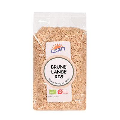 Rømer Långkornigt Brunt Ris är ett ekologiskt ris som är helt obehandlat. Det har en naturlig smak och kan användas i många typer av grytor och huvudrätter. Riset ska kokas i rikligt med vatten och har en längre koktid än vitt ris.