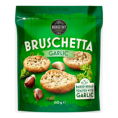 Nordthy Bruschetta Vitlök är ett välsmakande och mångsidigt mellanmål med krispig konsistens och intensiv vitlökssmak. De små, krispiga brödbitarna passar som ett snabbt mellanmål, som tillbehör till måltider eller som en del av ett läckert tapasbord. Den intensiva vitlökssmaken gör dem perfekta för att piffa upp dina favoriträtter samtidigt som de ger en härligt krispig konsistens.
