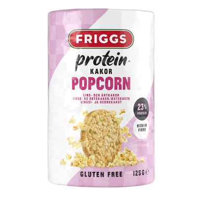 Friggs Proteinkakor Popcorn är lätta att ta med sig på språng och kräver ingen förberedelse. De kan ätas som de är eller toppas med kallskuret, ost eller grönsaker för mer variation. Produkten passar både barn och vuxna som vill ha ett lätt mellanmål med smak utan onödiga tillsatser. Perfekt för hektiska dagar.