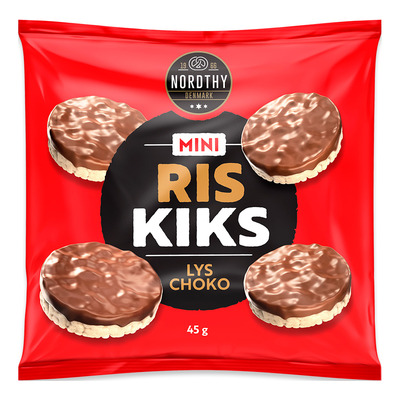 Nordthy Mini Riskakor Ljus Choklad är krispiga riskakor överdragna med ett sött lager av ljus choklad