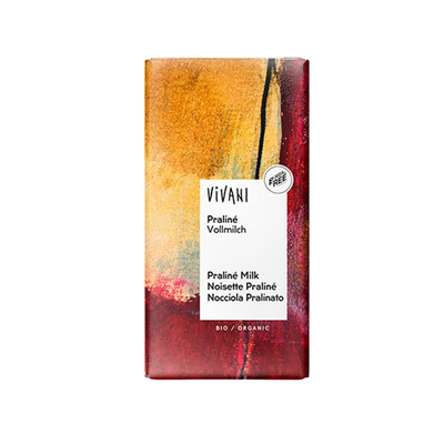 Vivani Pralin Choklad Ekologisk är ekologisk mjölkchoklad med hasselnötsnougat 50%.