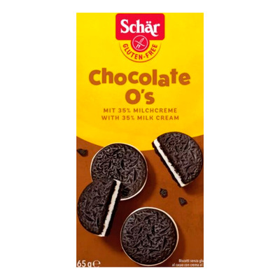 Ät Schär Cookies med mjölkkrämfyllning som mellanmål eller till kaffet. Förvaras svalt och torrt.