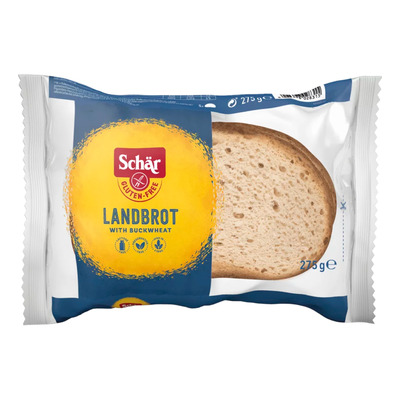 Schär Lantbröd är ett glutenfritt formbröd bakat på bovete och glutenfri surdeg. Brödet har en fast och skärfast konsistens med en mild och fyllig smak. Den gyllene skorpan och den fasta konsistensen gör att det passar både till frukost och lunch. Brödet är färdigskivat.