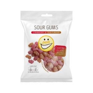 Easis Sour Gums är sockerfria och med en frisk och syrlig fruktsmak. De är sötade med maltitol och innehåller naturliga smak- och färgämnen. Produkten har ett högt innehåll av kostfiber och innehåller 40% färre kalorier jämfört med liknande sockersötat godis. Påsen innehåller 70 g och är lätt att ta med sig som en del av en sockerreducerad livsstil.