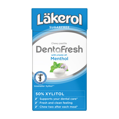 Få en frisk andedräkt med Läkerol DentaFresh - Menthol - en sockerfri tuggpastill, vilken också stärker tänderna.