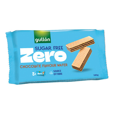 Gullón ZERO Chocolate Flavour Wafer är tunna, krispiga wafers med ett rikt lager av kakaokräm. Kexen är sötade med sötningsmedel och rika på fiber.