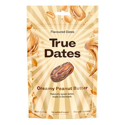 True Dates Creamy Peanut Butter kombinerar sötman från dadlar med krämigt jordnötssmör. Dadlarna är ett utsökt alternativ till traditionella sötsaker. True Dates Creamy Peanut Butter är rik på fibrer, har inget tillsatt socker och innehåller endast naturliga smaker. Varje tugga erbjuder en harmonisk balans av smaker som tillfredsställer dina smaklökar. True Dates är perfekta för dig som vill ha en söt godbit. Observera att dadlarna kan innehålla dadelkärnor eller fragment av kärnor.