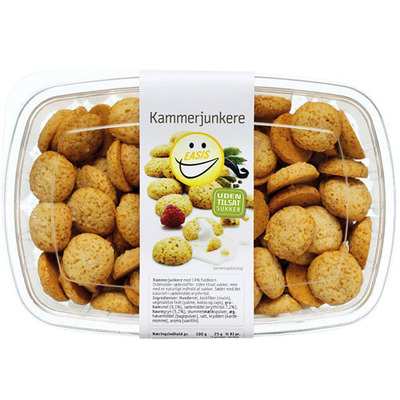 20-08-2018Minder mere om pebernødder end kammerjunker - de er ret små og hårde, og den dominerende smag er kardemomme. Men hvis ikke du har mulighed for eller lyst til at bage dine egne sukkerfri kammerjunker, så er disse OK. Desuden er det jo en smagssag. Under alle omstændigheder skal Easis have tak for at tilbyde et alternativ til de alt for sukkerfyldte kammerjunker, som er blevet normen.
