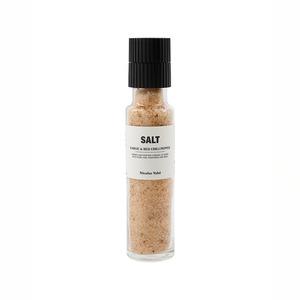Detta salt med vitlök och röd chilipeppar är perfekt till alla slags kött och pricken över i när du ska krydda dina rätter. Den eleganta flaskan är utrustad med en smart kvarn, så att lägga till extra god smak är snabbt och enkelt. Kvarnens stilrena design gör att den kommer att pryda kryddhyllan.