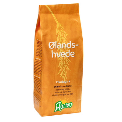 Aurions Ölandsvete odlas och produceras ekologiskti Danmark - därefter mals kärnorna till 80% för att få ett fint vetemjöl av hög kvalitet, som till exempel kan användas till bakning, innehåller gluten.